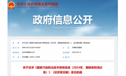 生态环境部发布2项国家生态环境标准征求意见稿2024-08-29 -